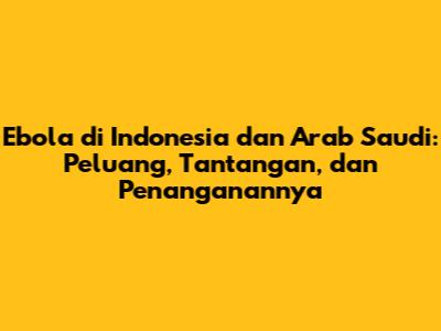 Ebola Di Indonesia Dan Arab Saudi: Peluang, Tantangan, Dan Penanganannya