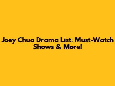 Joey Chua Drama List: Must-Watch Shows & More!