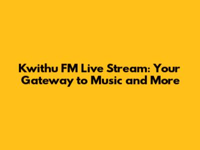 Accessing the Kwithu FM Live Stream: Easy Steps to Tune In