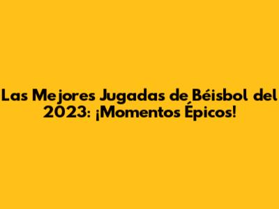 Las Mejores Jugadas De Béisbol Del 2023: ¡Momentos Épicos!